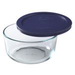 Pyrex Storage 4-Cup Round, Clear with Blue Plastic Cover, 4pk